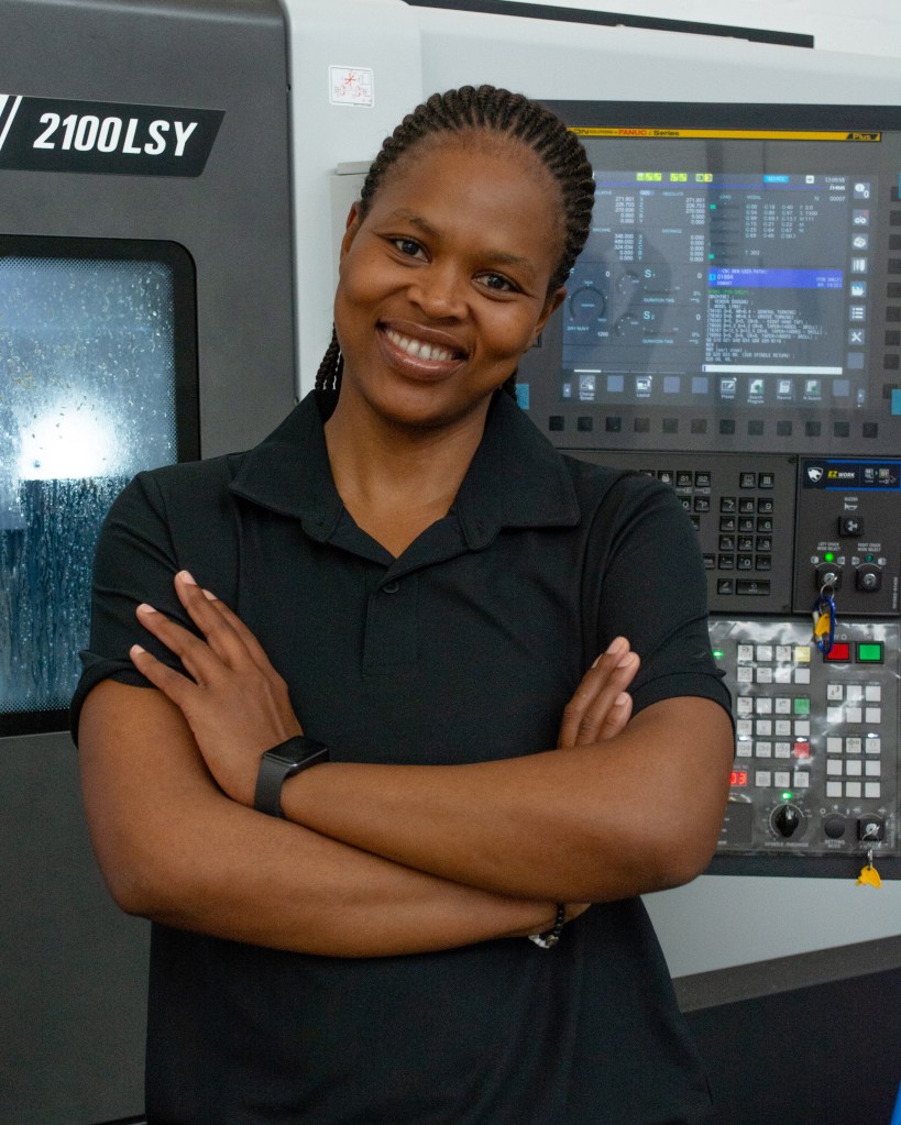 Yonela Mlanjeni is a skilled CNC Operator at SPP Precision Engineering, where she’s honed her craft under the mentorship of Managing Director Kelly Scholtz. Over the past year, Yonela has quickly built her expertise in precision machining, thriving in a role that offers continuous learning and growth.